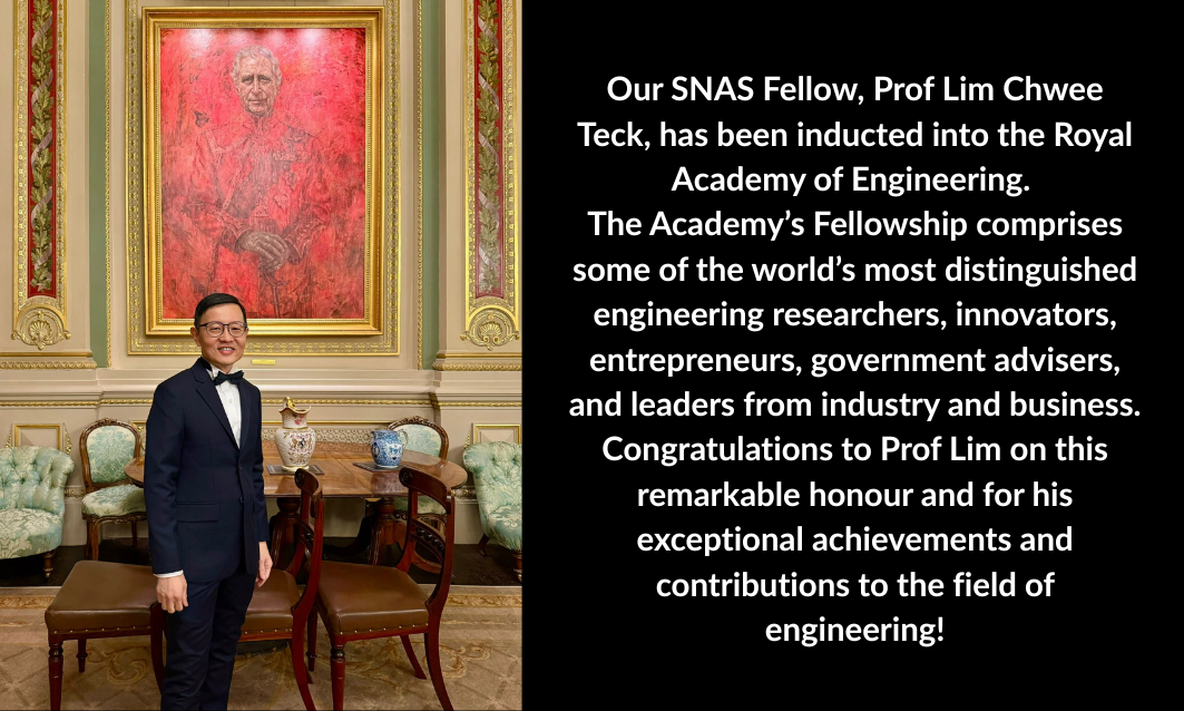 I look forward to working with everyone in our community to ensure that SNAS remains a vibrant, respected, and impactful institution for many years to come. Together, we will continue to build a future where science thrives for the benefit of Singapore and the world.