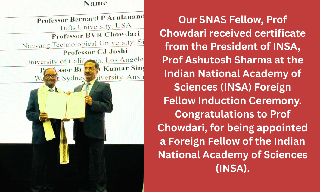 SNAS Fellows are outstanding scientists who are working or have worked in Singapore. They are expected to advise and/or contribute to the government and other national organizations on various aspects of science including research, teaching, science policy; promotion and public communication of science.